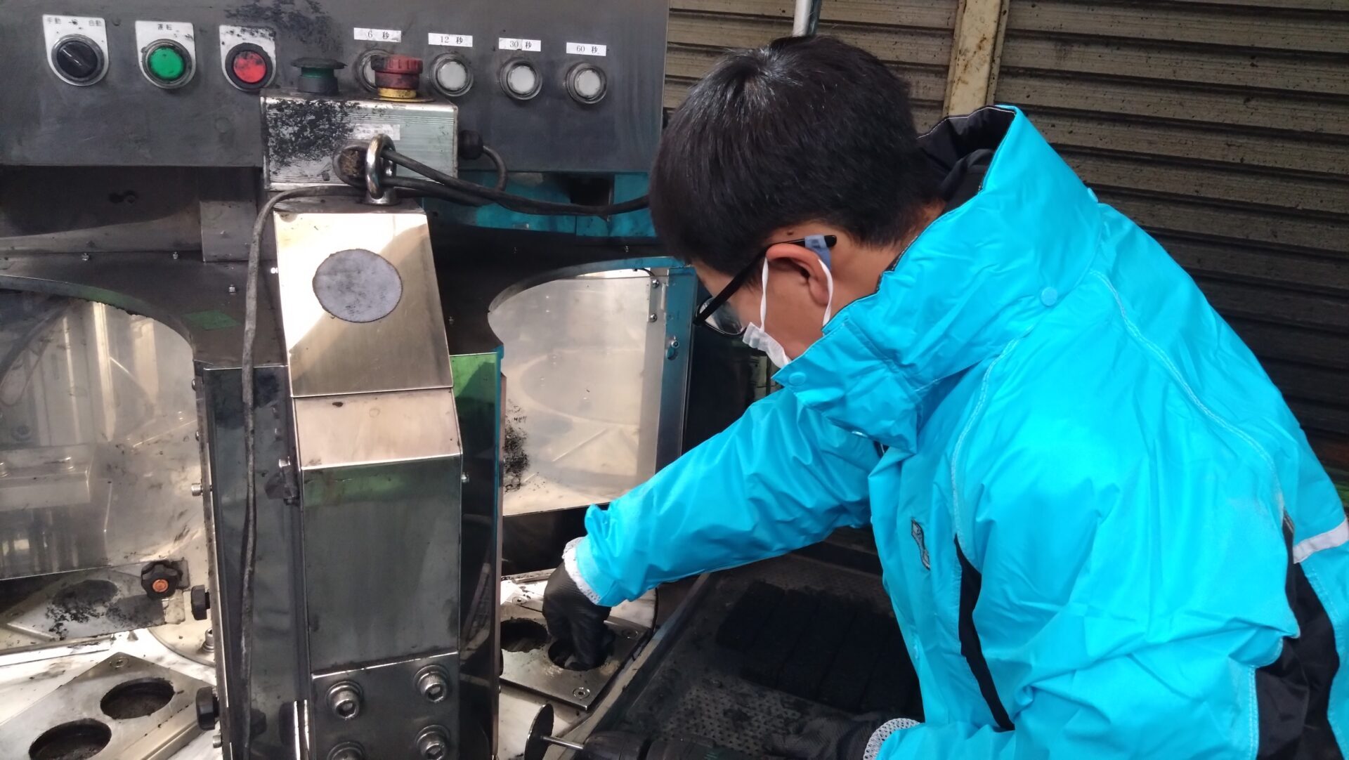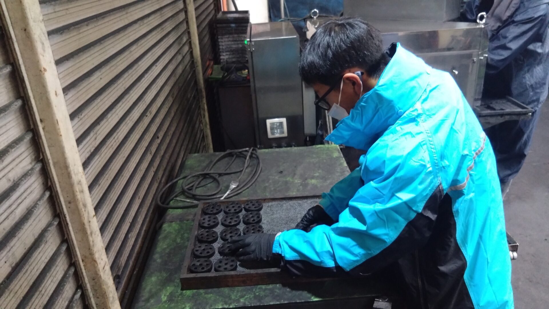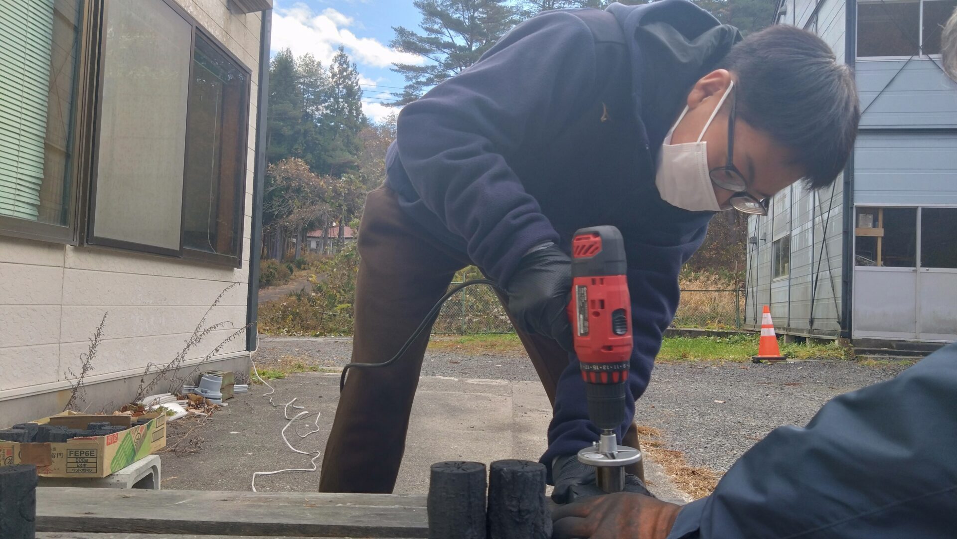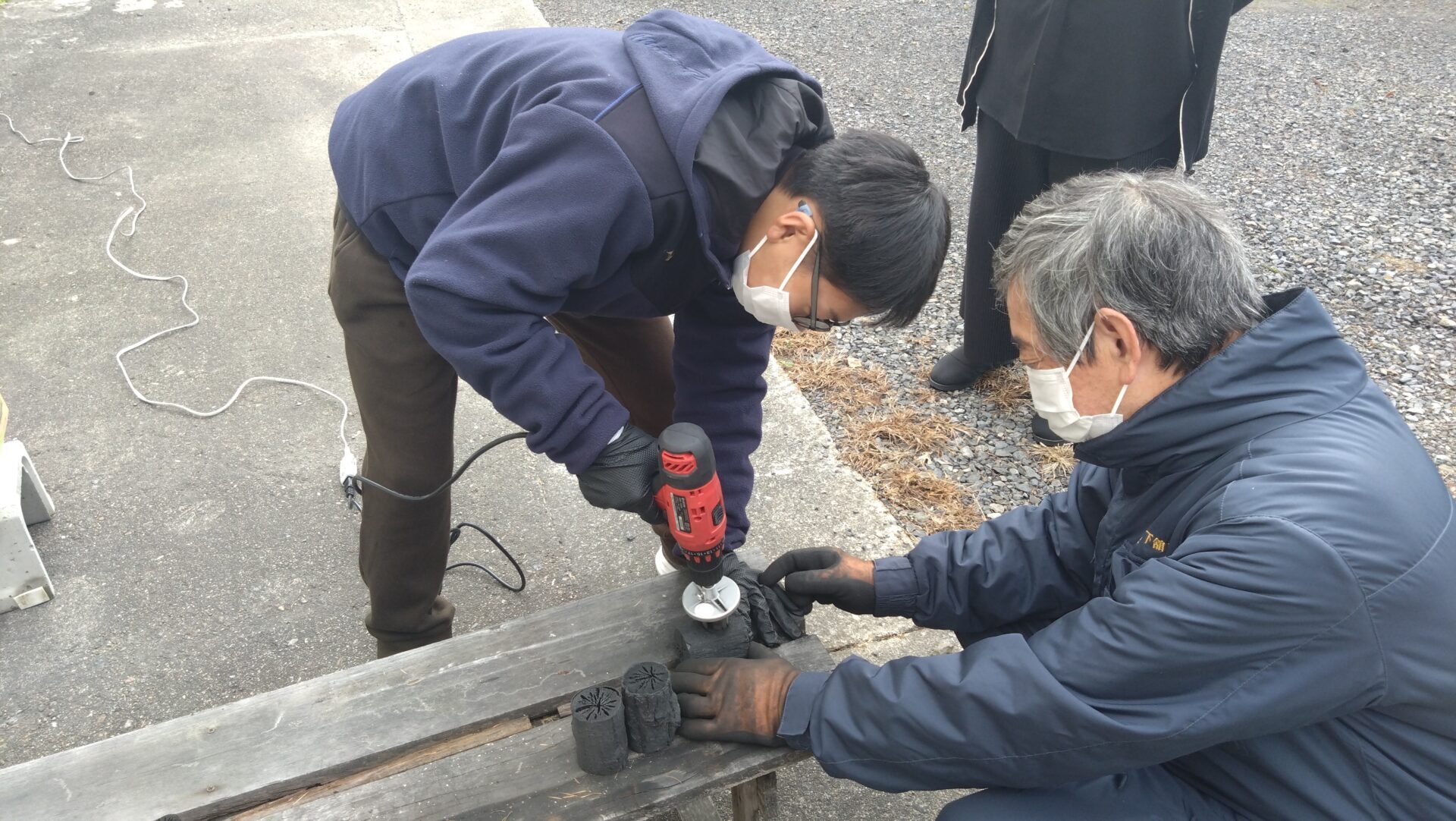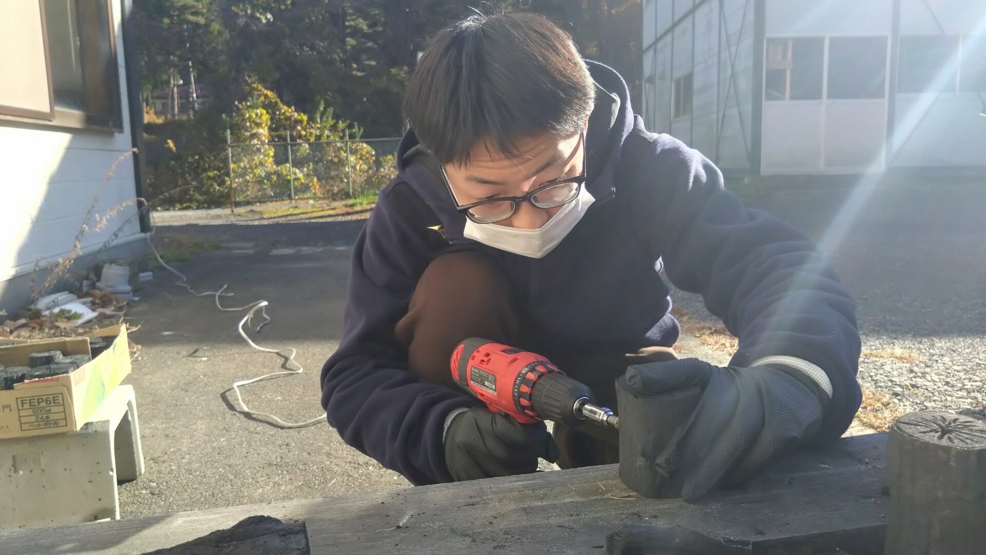 13日(木)は【株式会社ぼこたん】に行き、炭を加工し商品作りを体験した中目君は