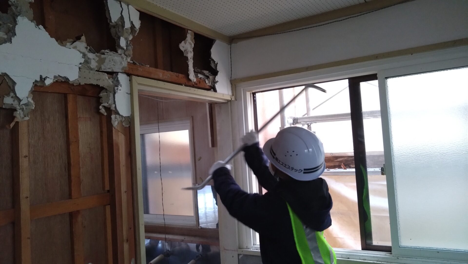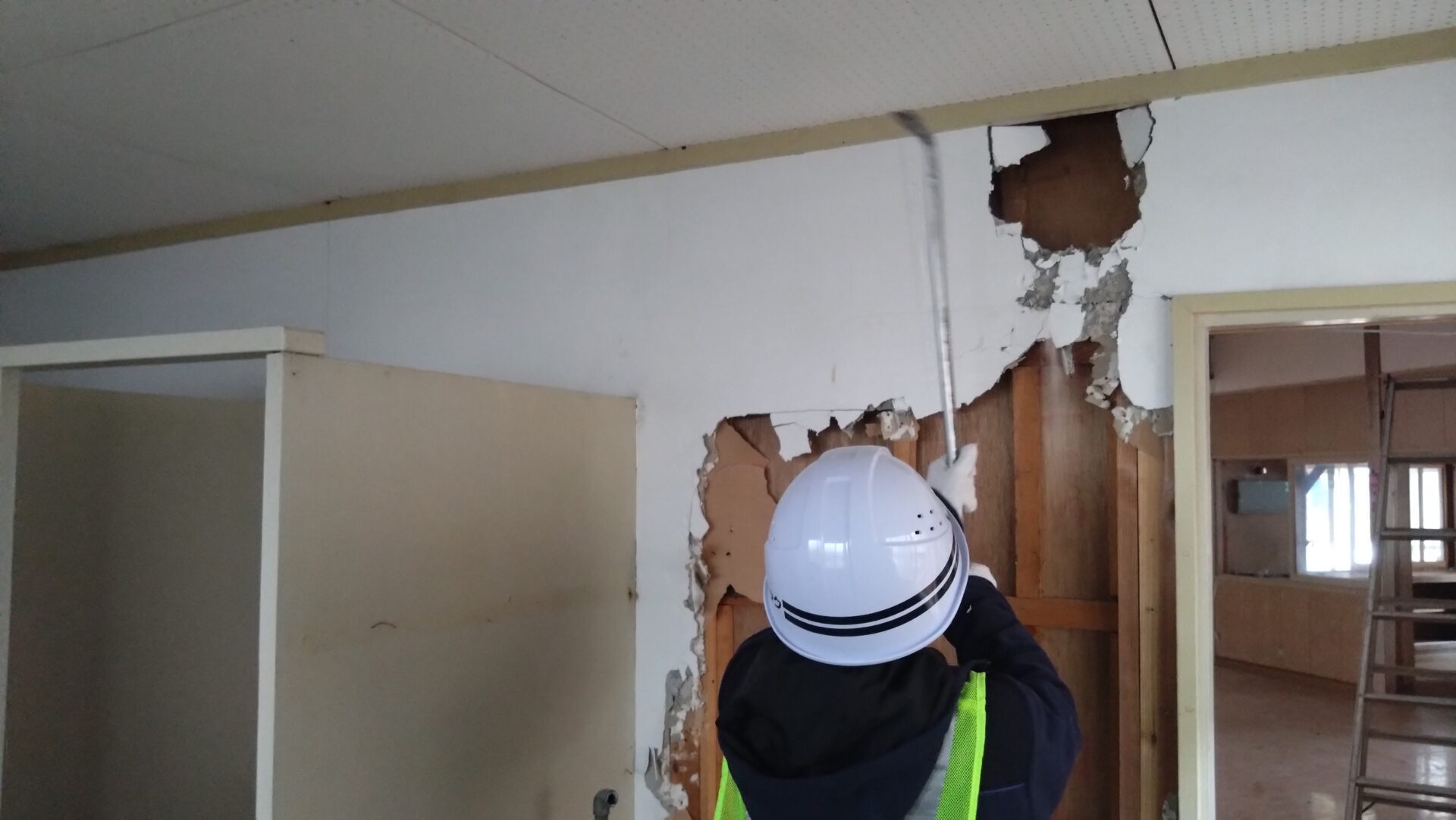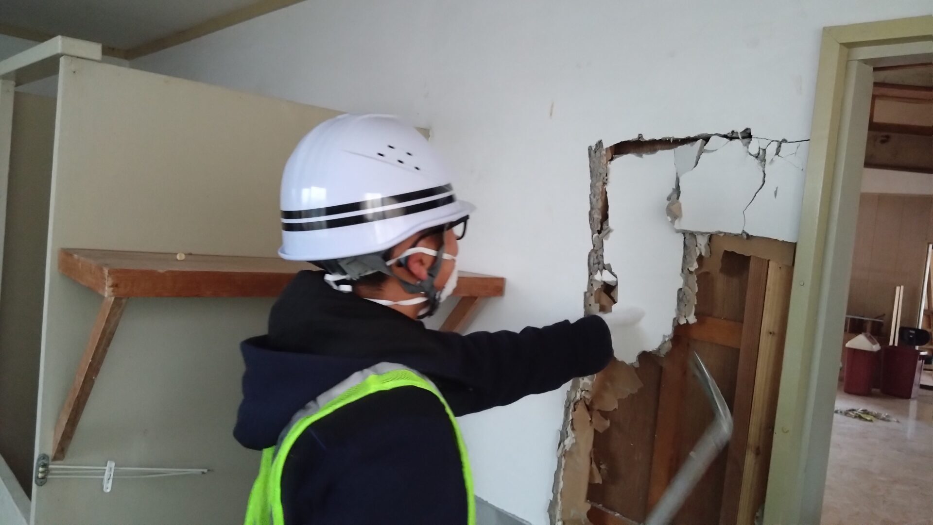 11日(火)は【旧霜畑児童館解体撤去工事】の現場に行き、実際に解体作業を体験した中目君は
